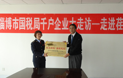 會(huì)上,舉行了授牌儀式,志賀進(jìn)總經(jīng)理從婁局長(zhǎng)手中接過了淄博市國(guó)稅局頒發(fā)的 “依法納稅 強(qiáng)國(guó)惠民” 的牌匾。